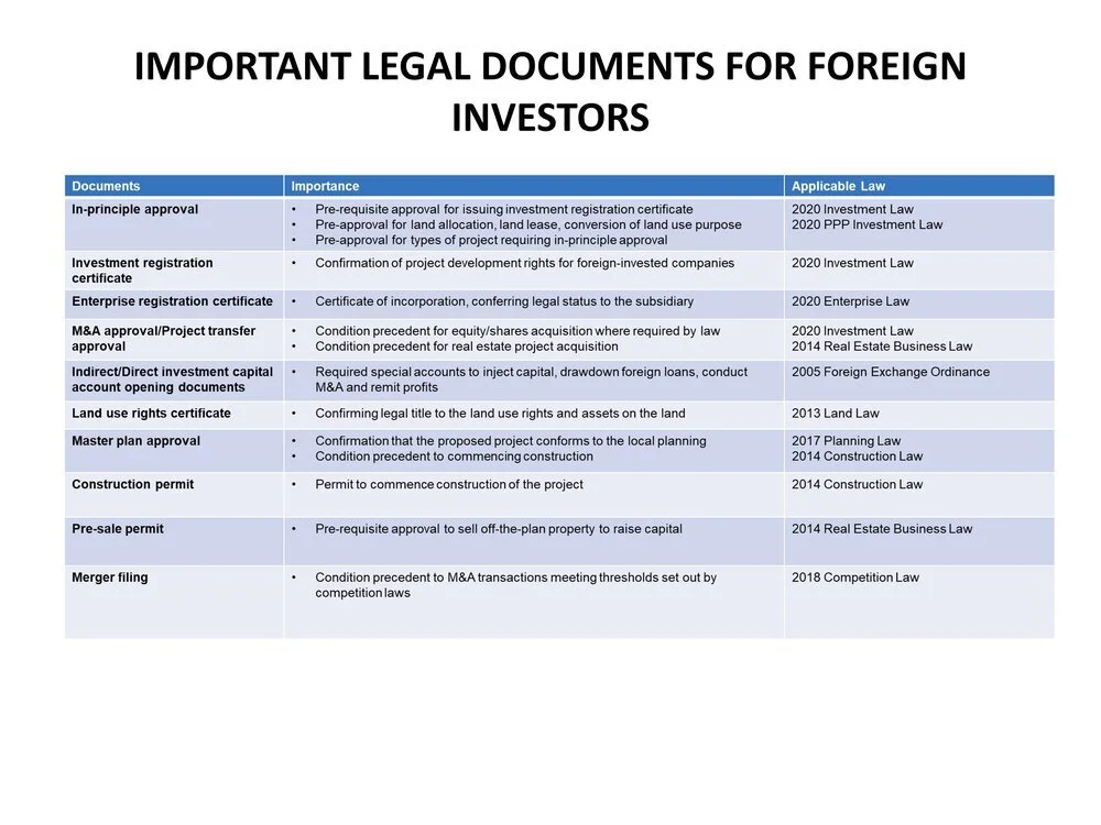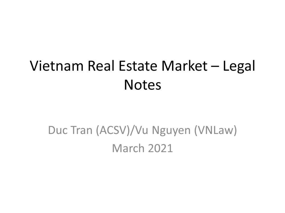 Dưới đây là một vài tóm tắt về các vấn đề pháp lý liên quan đến hoạt động đầu tư trong lĩnh vực bất động sản ở Việt Nam. Bài trình bày được thực hiện bởi Đức Trần (ACSV) và Nguyễn Quang Vũ (VNLaw). Xin hãy tải xuống bản pdf tiếng Anh tại Đây